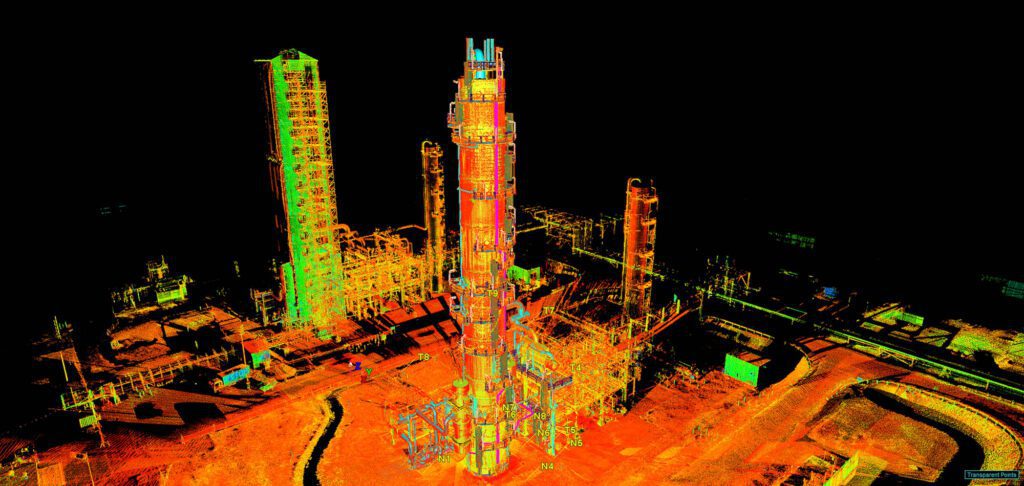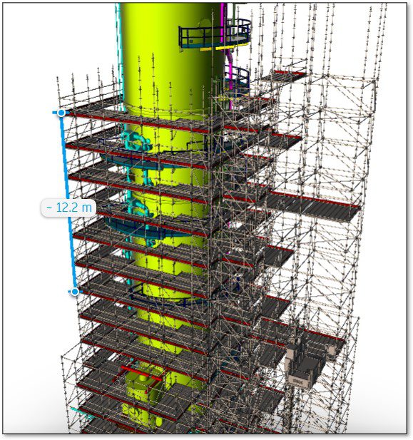 Cunningham Construction Limited were engaged by Methanex NZ to replicate our completed Distillation 3 (D3) scaffold on the neighbouring column Distillation 4 (D4). CCL had achieved some fantastic environmental outcomes with D3 and with the identical footprint CCL set out to conquer this one in the same starting fashion. This involved engaging local surveyors BTW for a full aerial survey and 3D laser scan of the column. From there, the 3D scan was sent offshore to decipher, clean up and format for use with our CAD designers. Once this was achieved Edgar from Layher was able to begin his magic resulting in the scaffold design overlay utilising the 3D model in all its glory.