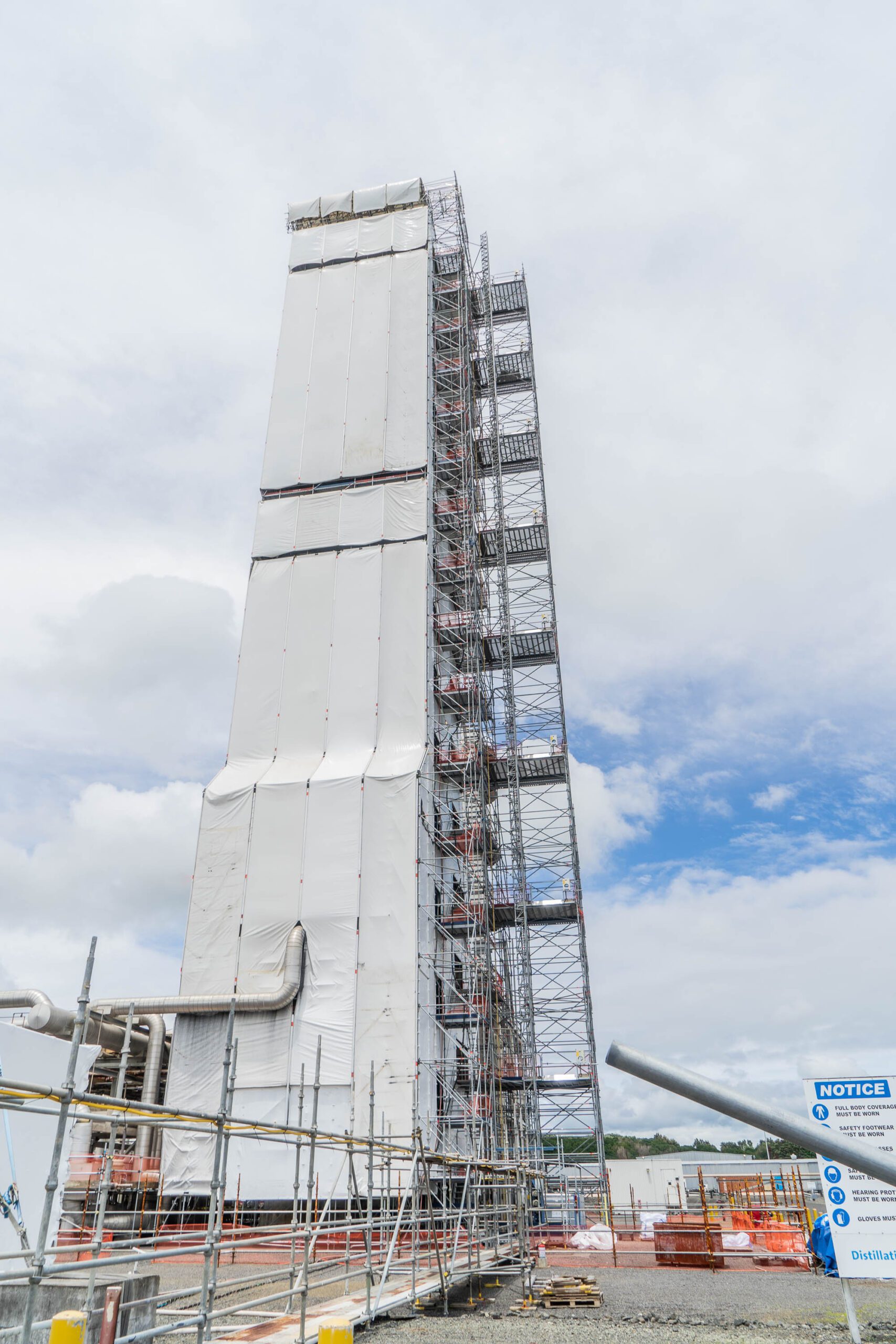 "The scope given to us by CCL is to design a fully encapsulated access scaffold at least 1.09m wide x 68.00m high for the Methanex distillation tower D4. This is almost identical to D3 which CCL have already finished successfully.